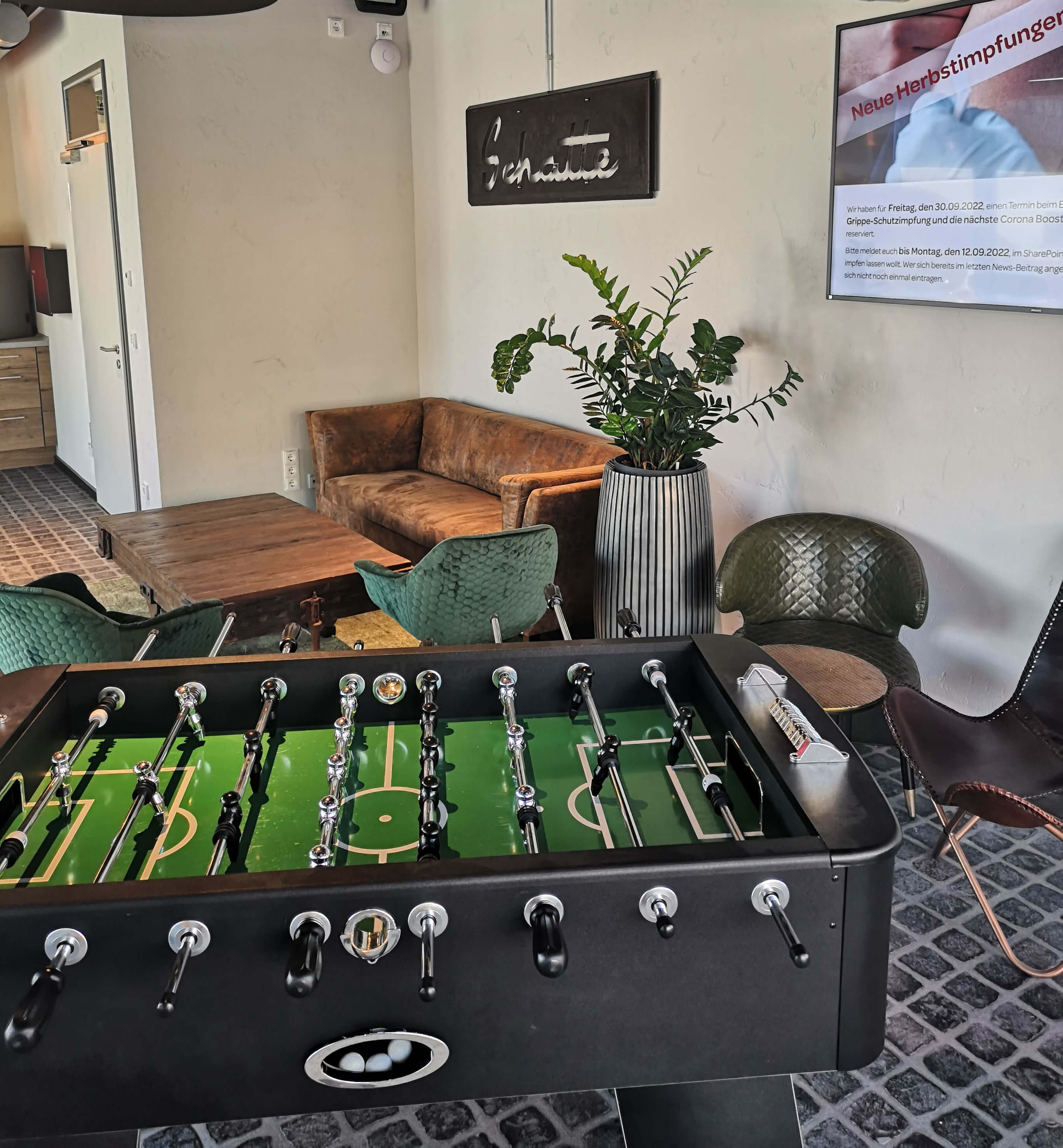 In unseren Büros setzen wir auf moderne Technik, ergonomische Möbel und gemütliche Gemeinschaftsbereiche. In den offenen und hellen Räumen können unsere Mitarbeiter für produktive Besprechungen oder gemeinsame Pausen zusammenkommen.