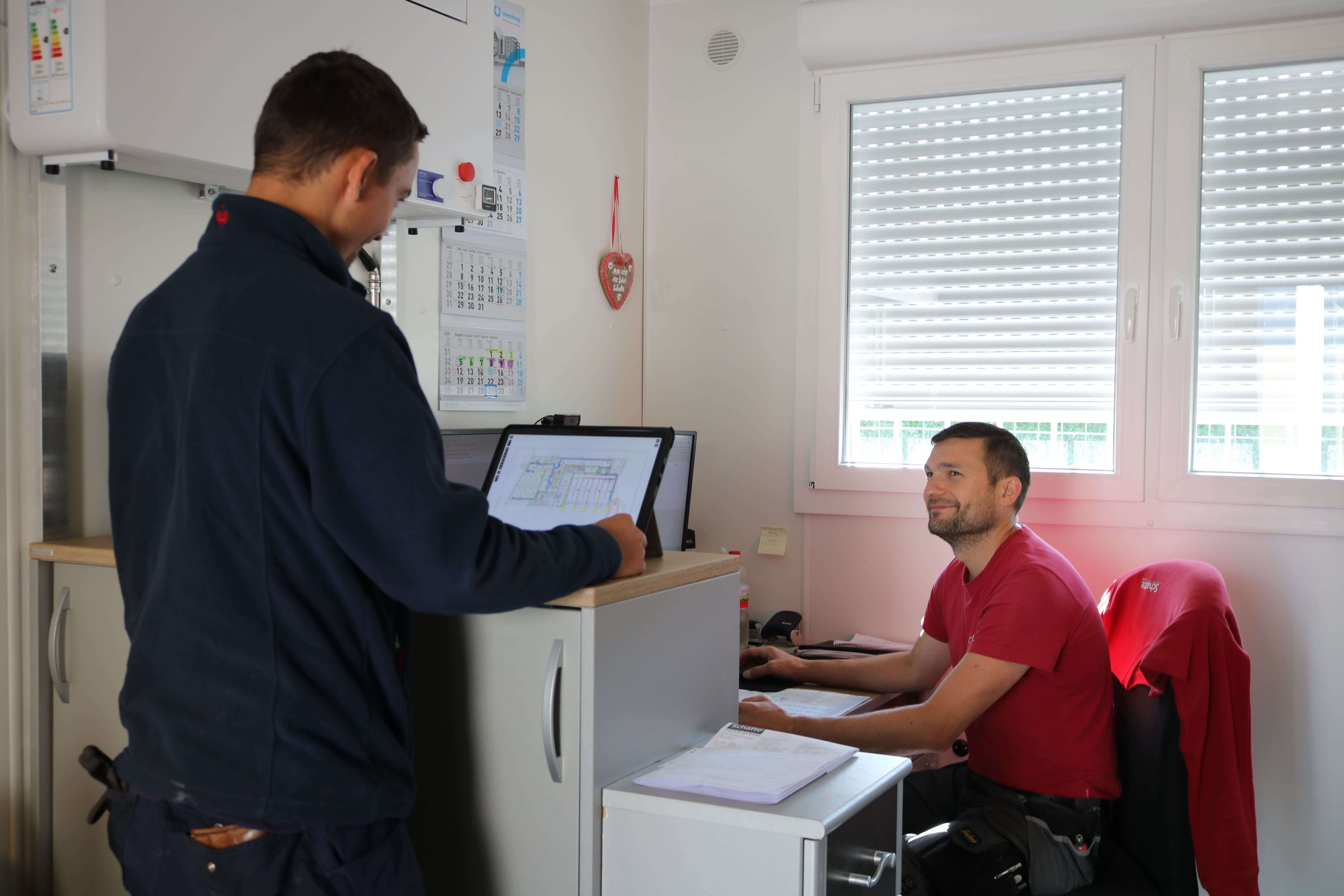 Ob als Büro für die Bauleiter oder als Aufenthaltsraum für das Team – unsere neuen Baucontainer verfügen über Schreibtisch-Arbeitsplätze, gemütliche Sitzecken, Heizung bzw. Klimaanlage sowie eine kleine Küchenzeile mit Kühlschrank, Mikrowelle und Spüle.